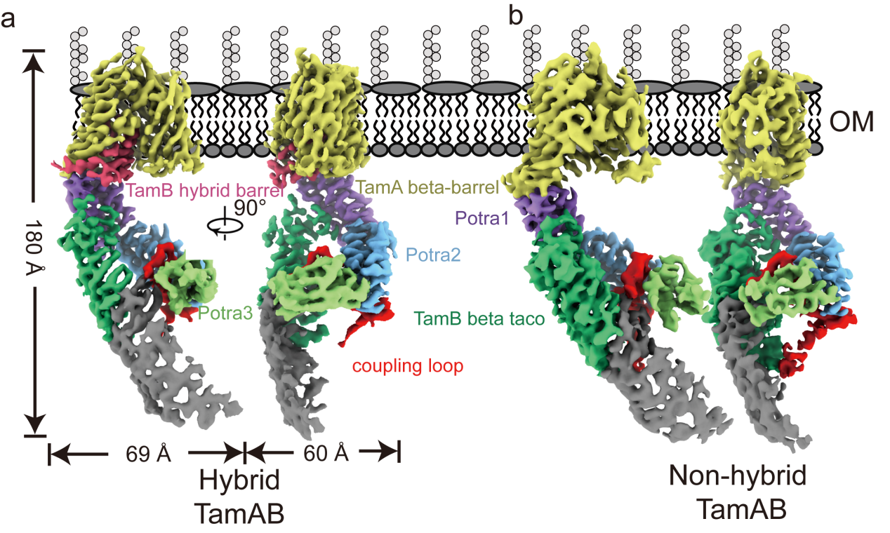 Nat. Commun丨董长江、张郑宇团队揭示了TamAB纳米机器独特的“杂合桶”结构特征及磷脂转运通道