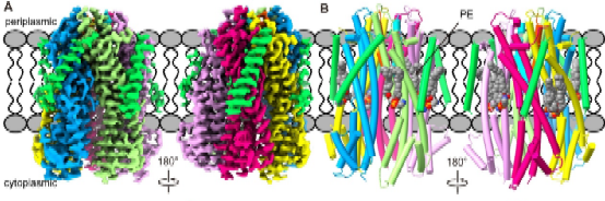 在该研究中,团队利用单颗粒冷冻电镜技术,解析了TolQRA复合物在 pH 5.4(分辨率3.18 Å)和 pH 8.0(分辨率3.60 Å)下的两种高分辨率结构。