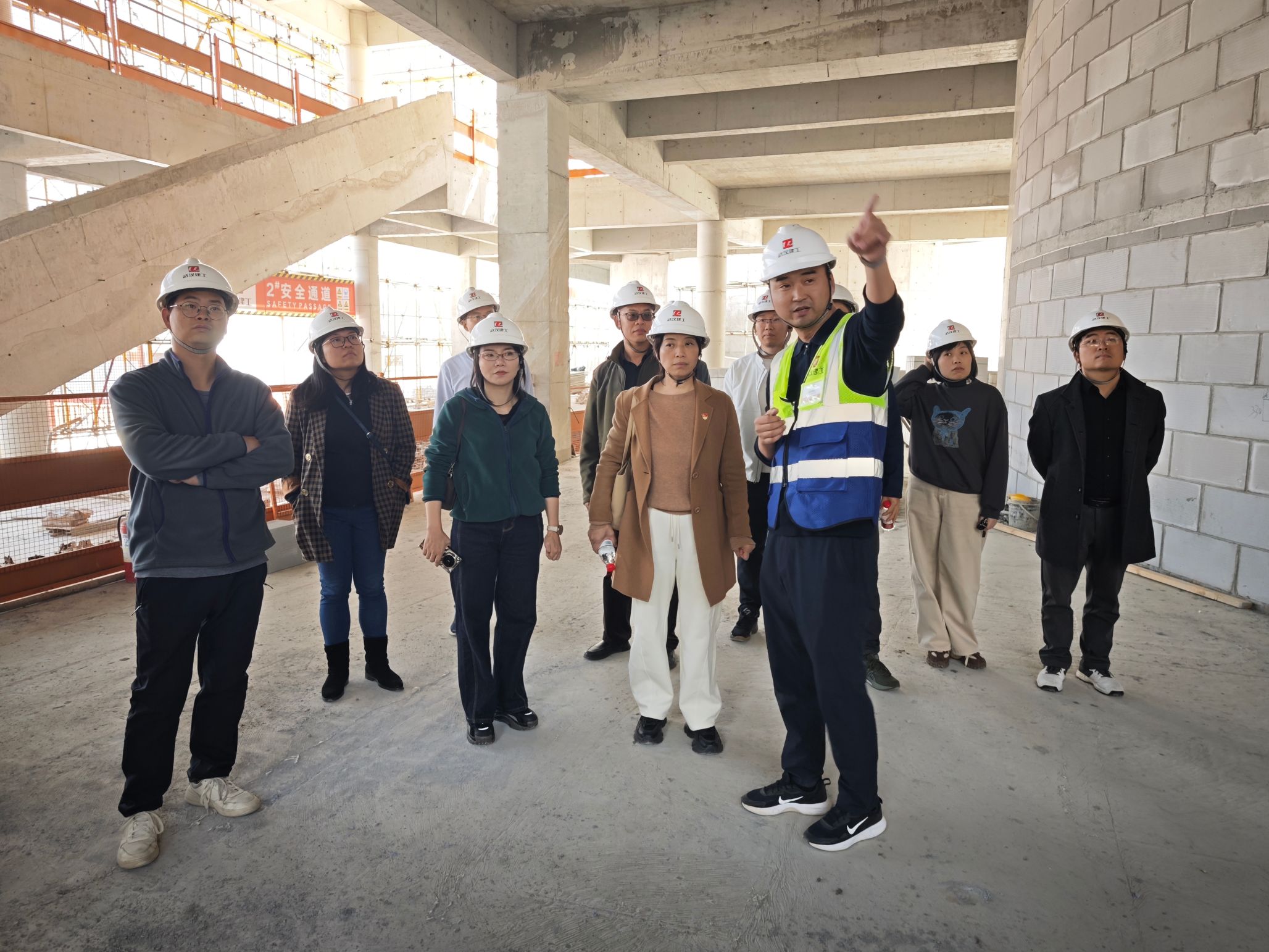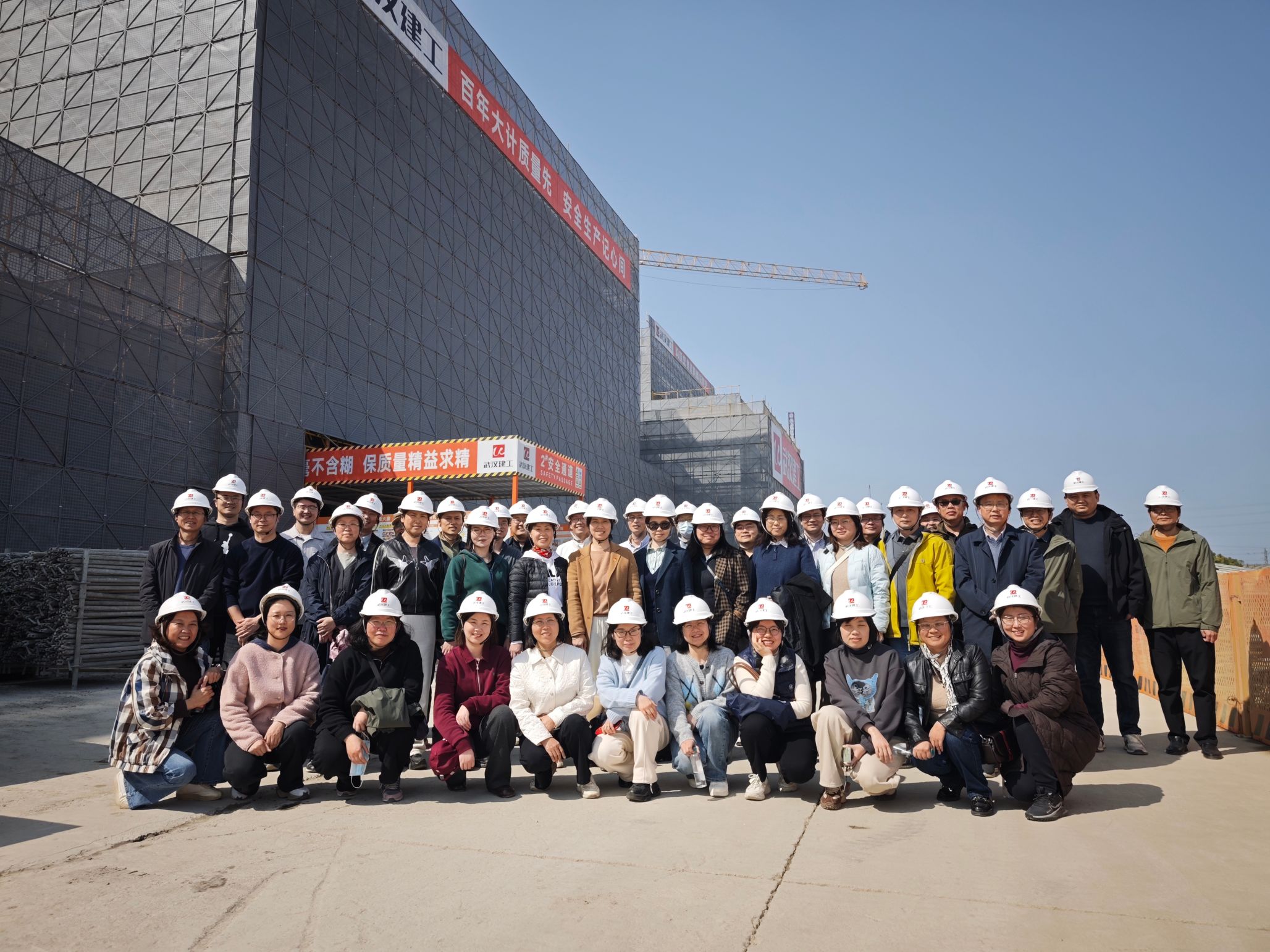 随后,师生们深入药学大楼建设工地进行实地考察。看着拔地而起、初具规模的新大楼,老师们难掩激动之情,纷纷表示对新校园的落成充满期待。大家一致认为,新园区的建成将极大改善学院的硬件条件,为教学科研和拔尖创新人才培养提供更加广阔的平台。考察间隙,全体师生在药学大楼工地前合影留念,用镜头记录下这一见证学院发展历程的珍贵时刻。
