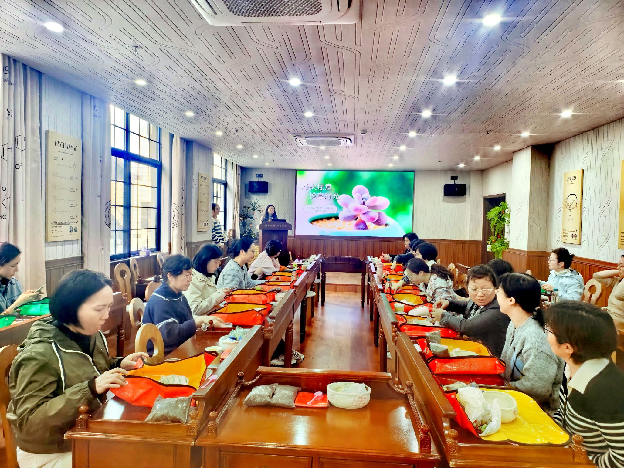 随后,专业园艺师进行现场演示,系统讲解多肉植物的常见品种特性、科学种植方法、盆土搭配技巧以及后期养护要点,并实时解答老师们的疑问。